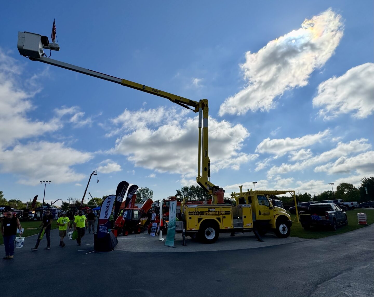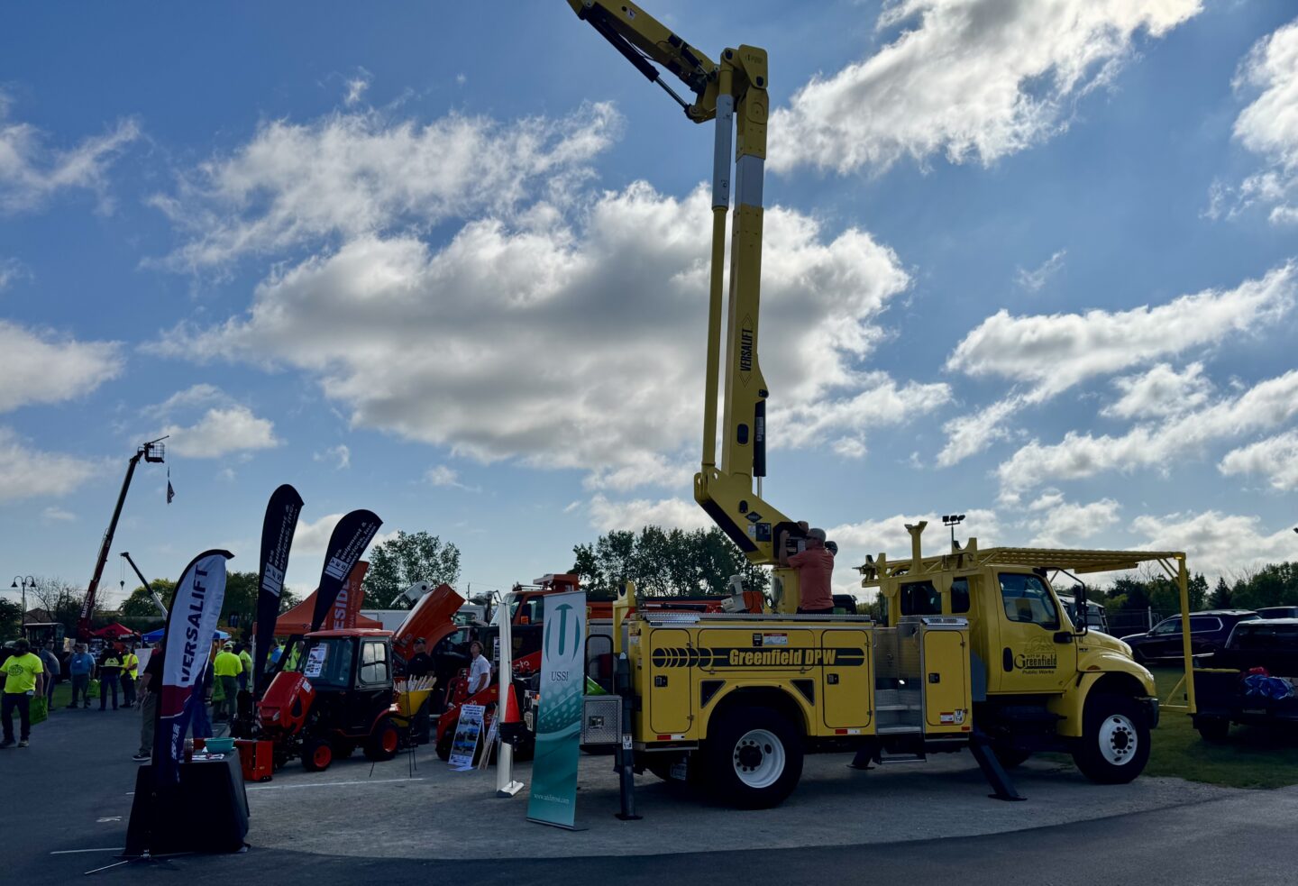 At our booth, we were proud to showcase a clean, new Versalift aerial unit mounted on a bold yellow Greenfield Public Works chassis — a build we recently completed. Seeing it parked right at the center of the show, ready for service, was a quiet moment of pride. That bucket truck isn’t just a piece of equipment. It’s a promise. A tool for a crew that needs to get in the air, get the job done, and get home safe.