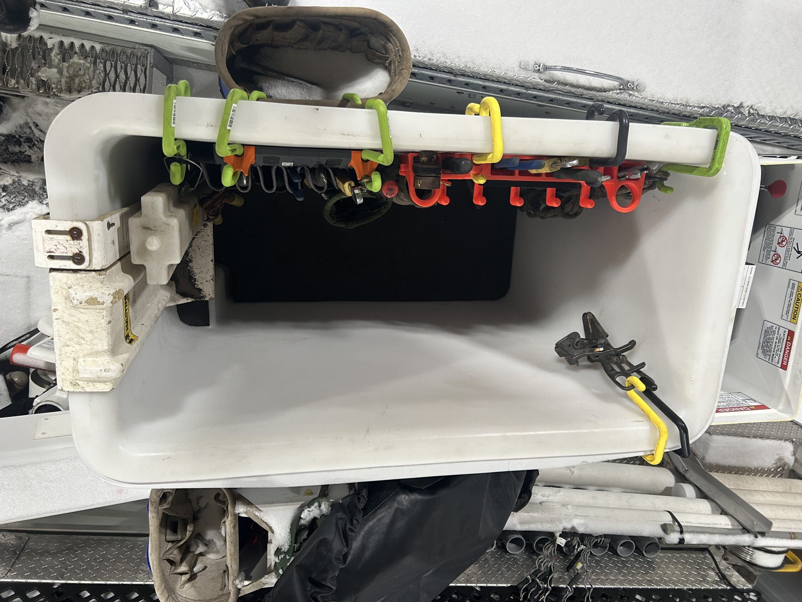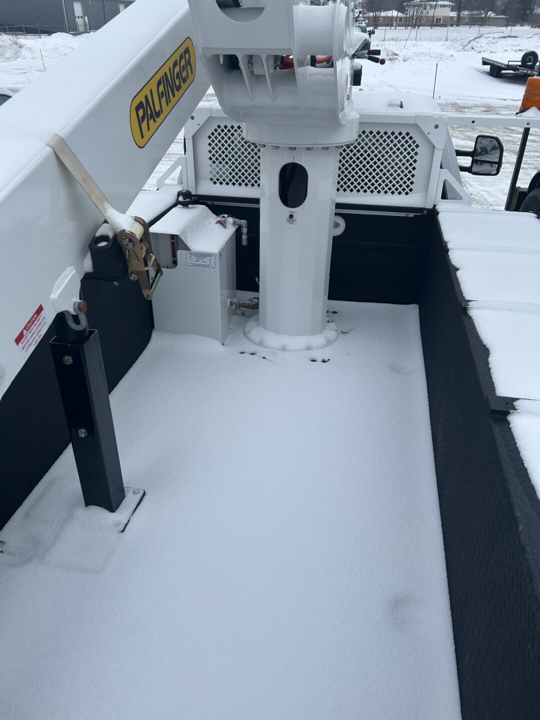 - The pedestal base and machine mount are inspected during the annual inspection. Having the bed of the truck cleared out allows our technicians best access to these critical components.