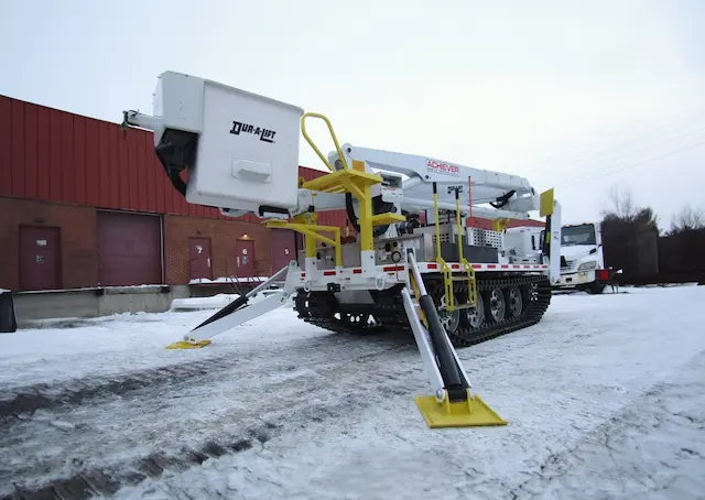 - DLT2‑60 DU — 65′ insulated tracked aerial with elevator and 1,000 lb winch